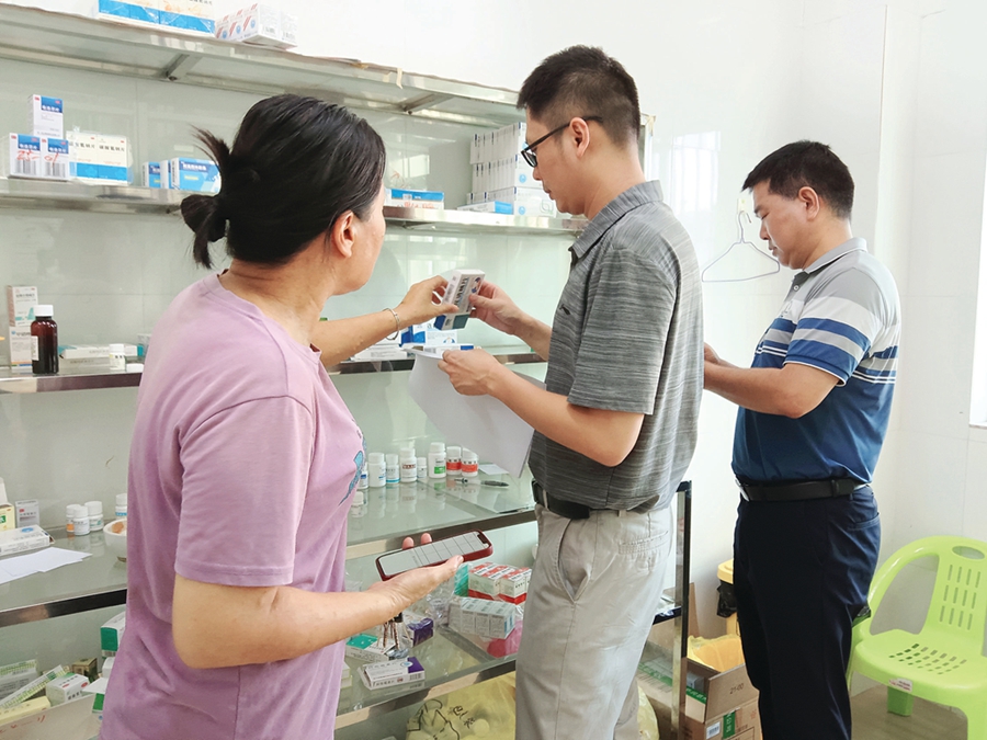 惠州紀(jì)檢監(jiān)察工作人員現(xiàn)場檢查街道衛(wèi)生站建設(shè)及運(yùn)行、藥品質(zhì)量是否有保障等工作。