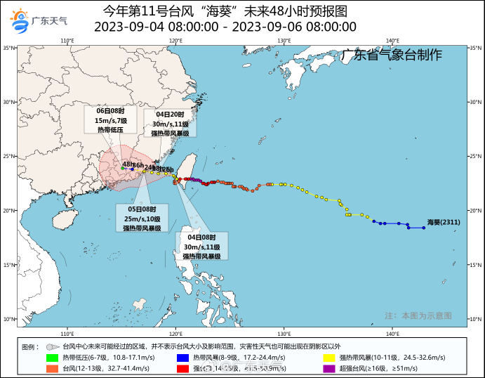 4日09時,今年第11號臺風(fēng)“?保◤姛釒эL(fēng)暴級)中心位于北緯23點2度,東經(jīng)119點6度,也就是在臺灣臺南市近海,中心附近最大風(fēng)力11級,達到30米每秒的風(fēng)速,中心最低氣壓975百帕。預(yù)計,“?睂⒁悦啃r10到15公里的速度向偏西方向移動,強度變化不大。希有關(guān)方面密切注意,繼續(xù)做好防御臺風(fēng)的工作。#?5日登陸粵閩交界##2023年臺風(fēng)海葵#