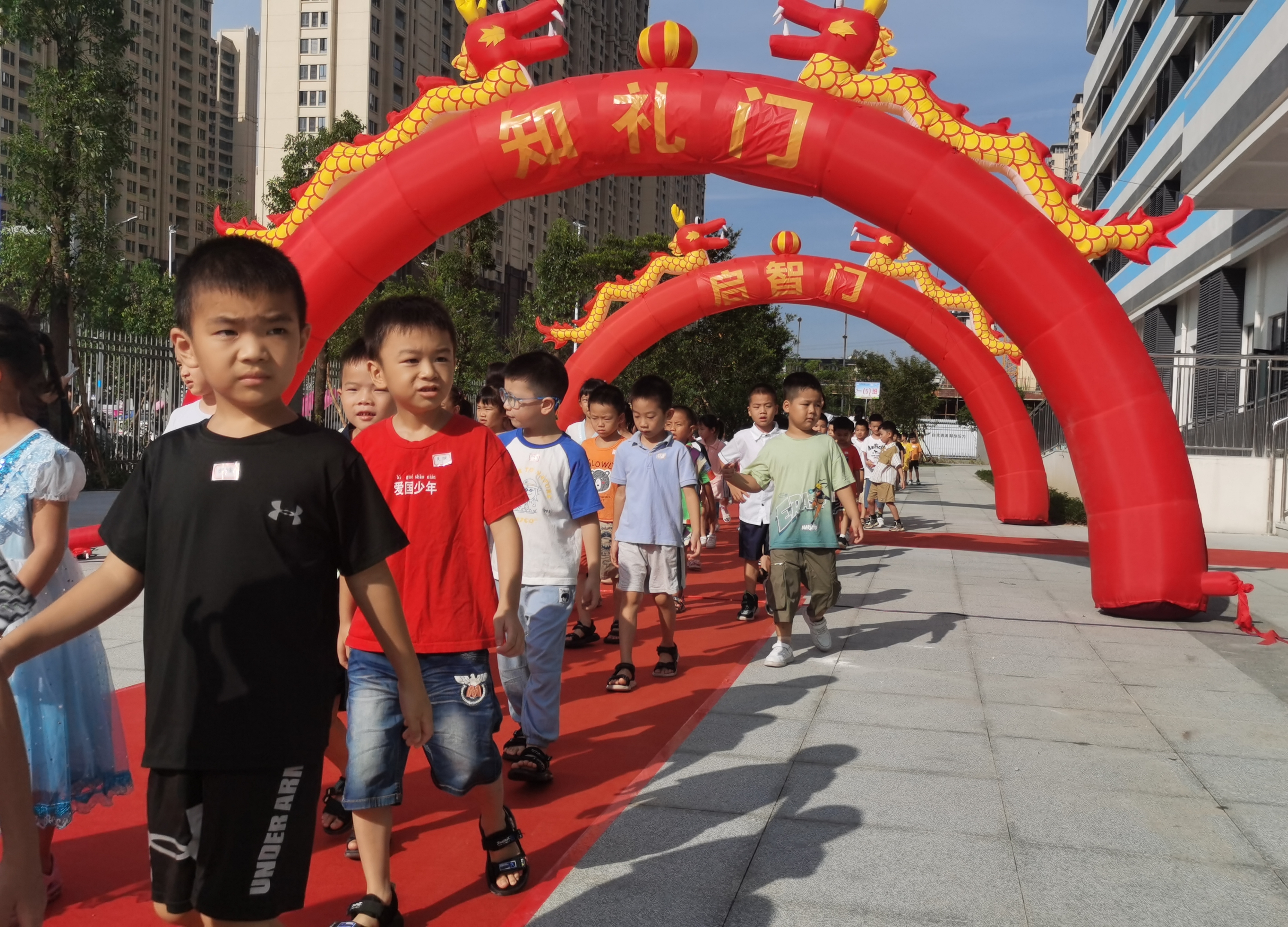 博羅三小在開學當天設(shè)置紅毯歡迎新生入校。 惠州日報記者盧泓宇 朱麗婷 攝