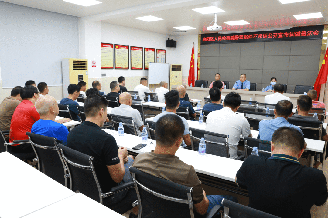 惠州檢察機關(guān)堅持治罪與治理并重,通過開展不起訴案件集中宣告、公開訓(xùn)誡等方式,進一步做好不起訴案件的“后半篇”文章;蓐枀^(qū)檢察院對醉駕案件被不起訴人集中開展不起訴公開宣布訓(xùn)誡,被不起訴人在訓(xùn)誡后均表示深刻認(rèn)識到醉酒駕車的危害,旁聽的群眾也深受警醒。