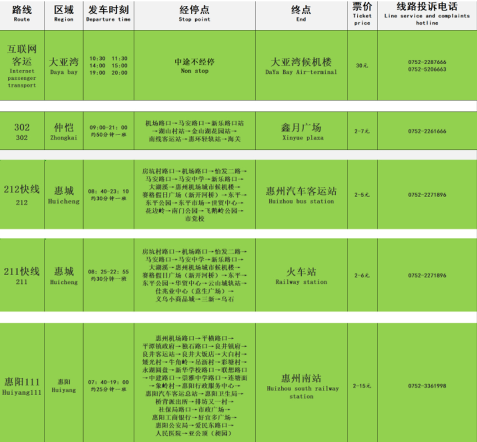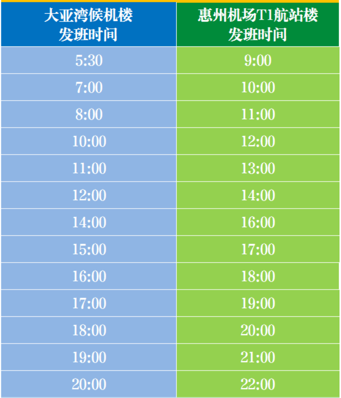惠州機(jī)場旅客班車時刻表
