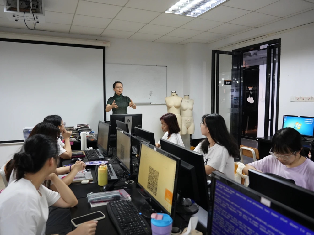 傳統(tǒng)的服裝專業(yè)教學(xué)方式是基于單個(gè)知識(shí)點(diǎn),單一的教學(xué)方式無(wú)法適應(yīng)當(dāng)下市場(chǎng)對(duì)復(fù)合型人才的需求。為此,楊雪梅和她的團(tuán)隊(duì)從市場(chǎng)產(chǎn)品流程的角度出發(fā),以省級(jí)重點(diǎn)項(xiàng)目“服裝三維數(shù)字智能技術(shù)開(kāi)發(fā)中心”建設(shè)為抓手,于2018年成立服裝數(shù)字藝術(shù)創(chuàng)意實(shí)踐工作坊。這支由“企業(yè)導(dǎo)師+雙師導(dǎo)師”構(gòu)成的省級(jí)教學(xué)團(tuán)隊(duì),在專業(yè)教學(xué)上進(jìn)行大刀闊斧的改革。在教學(xué)手段上,研究運(yùn)用VR、AR、3D仿真等數(shù)字技術(shù),通過(guò)虛擬仿真技術(shù)與教學(xué)環(huán)節(jié)緊密結(jié)合的教學(xué)方法,實(shí)現(xiàn)了教材立體化、知識(shí)動(dòng)態(tài)化和教學(xué)資源共享,形成以體驗(yàn)為特征的教學(xué)方式,填補(bǔ)了國(guó)內(nèi)相關(guān)專業(yè)教學(xué)空白。