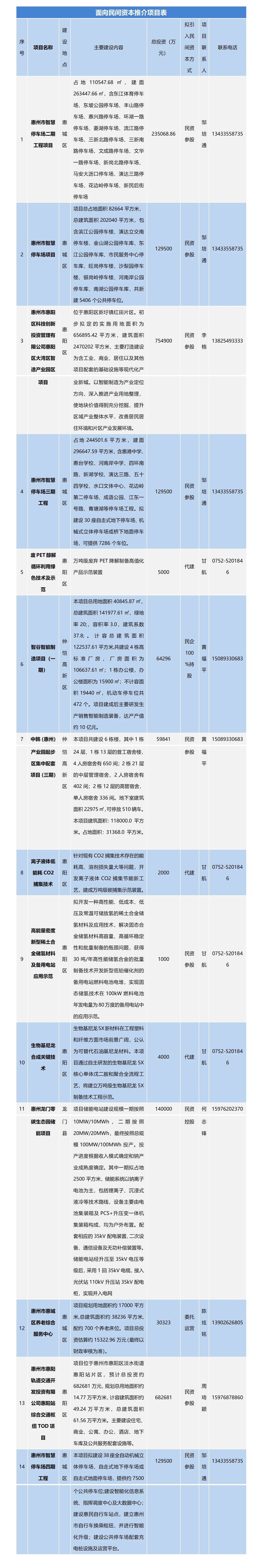 在向民間資本推介項目平臺,記者看到,建設地點為惠州的推介項目目前共有14個,總投資超2367億元。