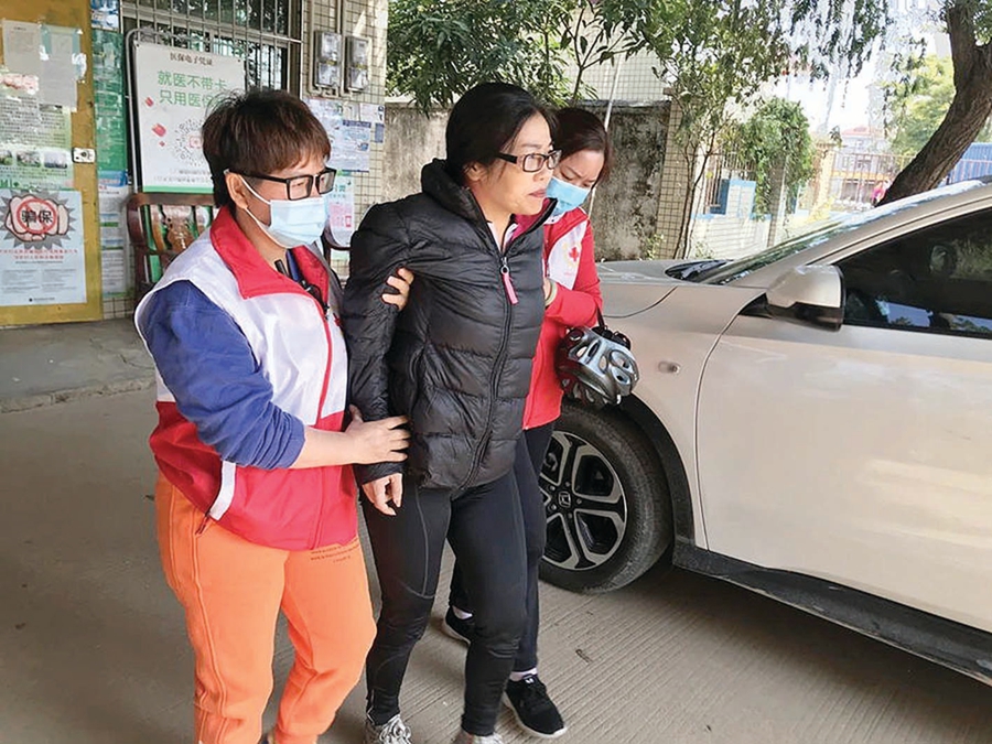 鄺彩紅(左一)在幫助行動(dòng)不便的市民。
