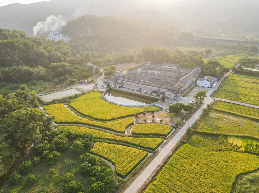 如今,在山清水秀的官山村,每到水稻即將收成的季節(jié)里,青黃相接的稻田與村里百年圍屋拱秀樓相映成趣,好一幅鄉(xiāng)村振興的和美畫(huà)面。
