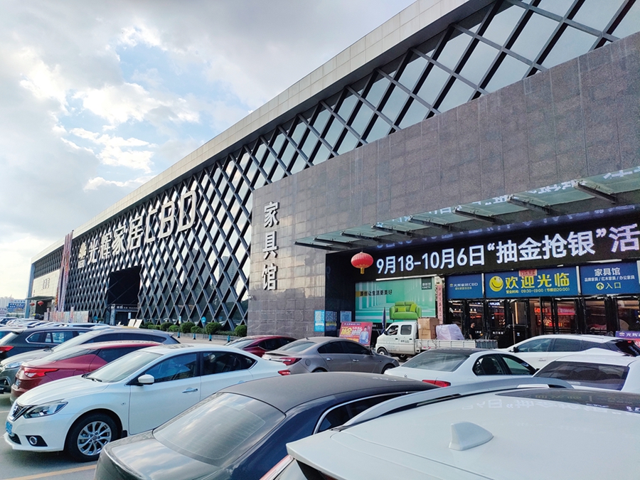 進(jìn)入光輝家居CBD,可以看到很多品牌打出了國慶優(yōu)惠價:繽迪直排鋼琴沙發(fā)23988元;金海馬白巧齊邊床架+護(hù)脊床墊4980元;芝華仕以愛之名曲尺三件都市沙發(fā)5999元;帝舵三聯(lián)動極窄輕奢推拉門888元每平方;達(dá)盛軟裝3房1廳窗簾2780元每套……每年9月底,都是裝修行業(yè)“金九銀十”旺季,光輝家居CBD順應(yīng)市場需要,于9月18至10月6日舉辦“抽金搶銀”活動,以抽獎的方式,送出黃金、現(xiàn)金、全屋家電,獎品價值最高可達(dá)4999元。