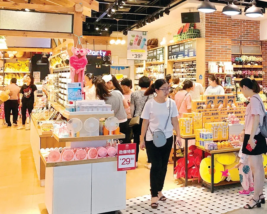 市區(qū)江北某購(gòu)物中心人頭攢動(dòng),購(gòu)銷(xiāo)兩旺。