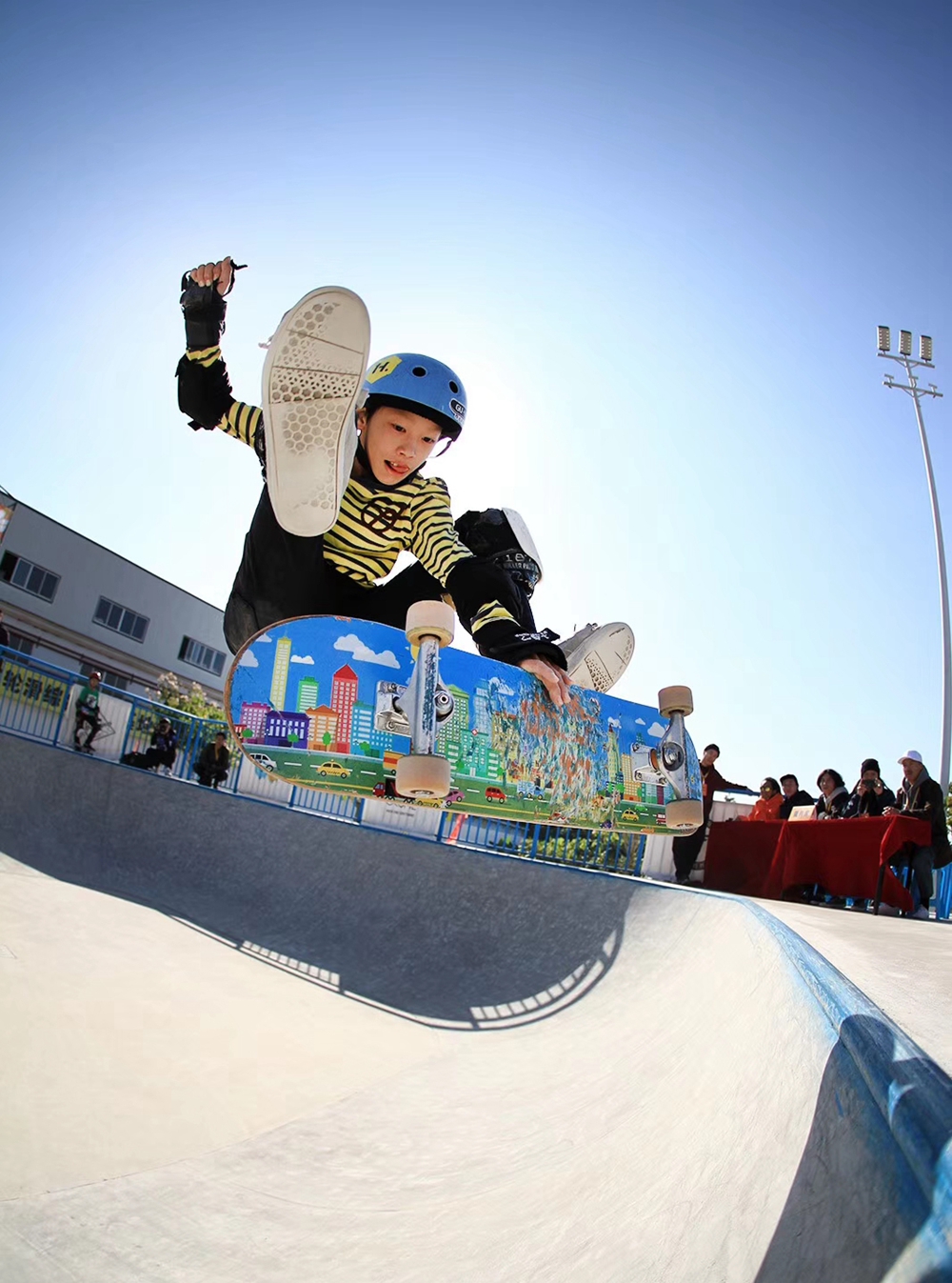 “我第一次見陳燁是在2019年,在全國青年運動會上!毙l(wèi)乃章說。當時,年僅11歲的陳燁在比賽中表現(xiàn)出色,獲得了第三名。通過比賽,衛(wèi)乃章看到了陳燁在滑板上的靈性以及他對滑板的理解。