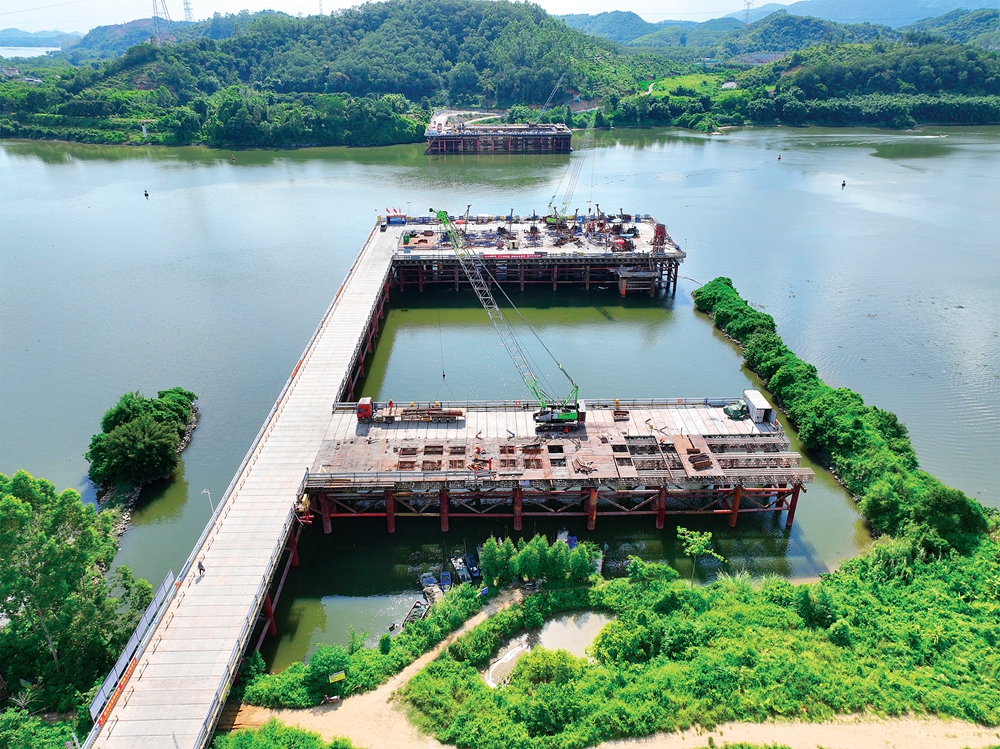 項(xiàng)目全長約65.459公里,總投資222.74億元(其中惠州段部分總投資195億元),先行工程已于2022年11月開工,目前各標(biāo)段項(xiàng)目駐地、拌合站、鋼筋加工廠已陸續(xù)投入使用,控制性工程東江特大橋主墩樁基已完成46根,3#主墩深水大體積承臺正在進(jìn)行圍堰施工,觀洞隧道正在進(jìn)行臨建及洞口工程施工。