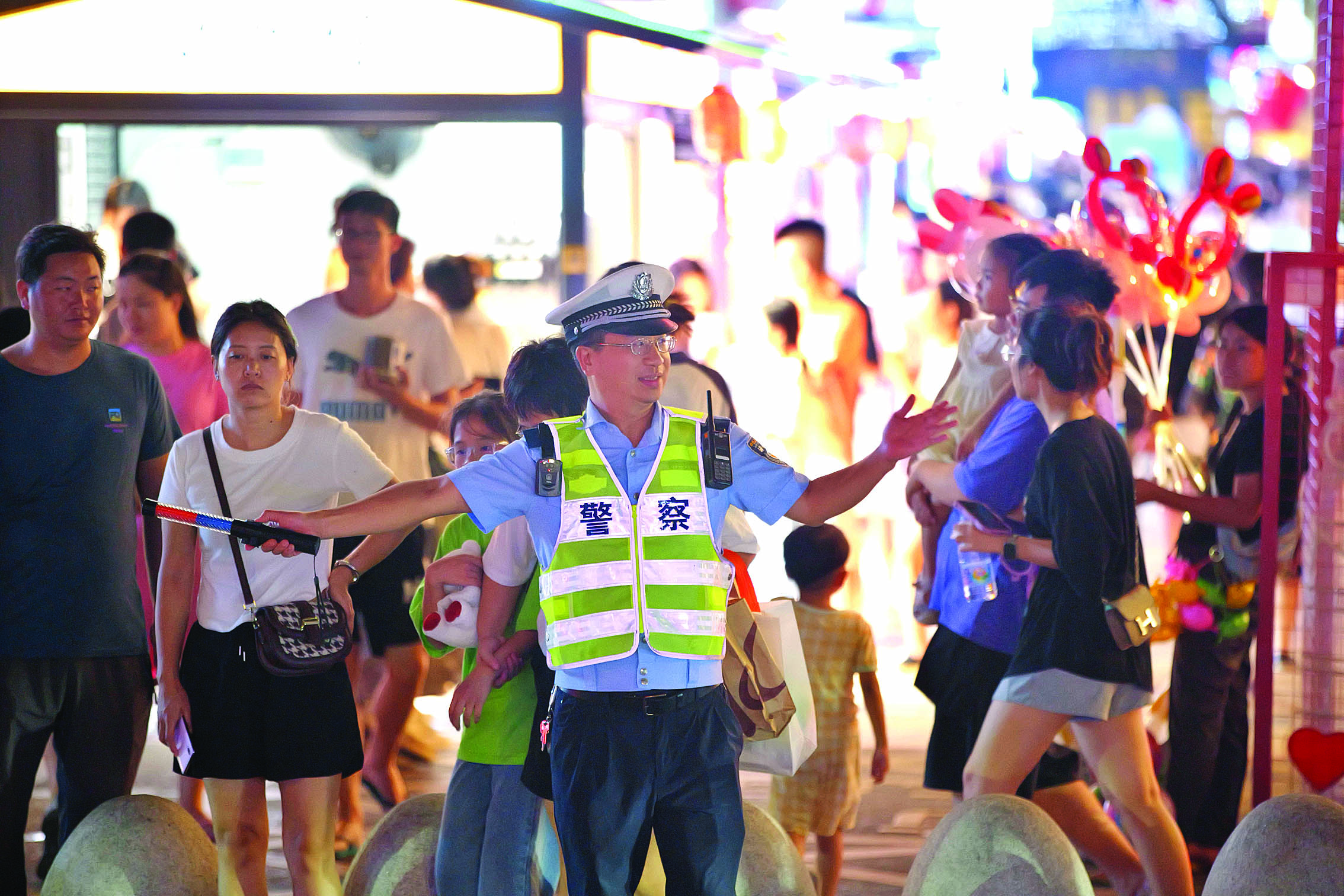 節(jié)日執(zhí)勤,服務(wù)好市民我快樂;葜萑請(bào)記者李松權(quán) 張藝明 鐘暢新 黃鑫威 羅劍業(yè) 陳濤 攝