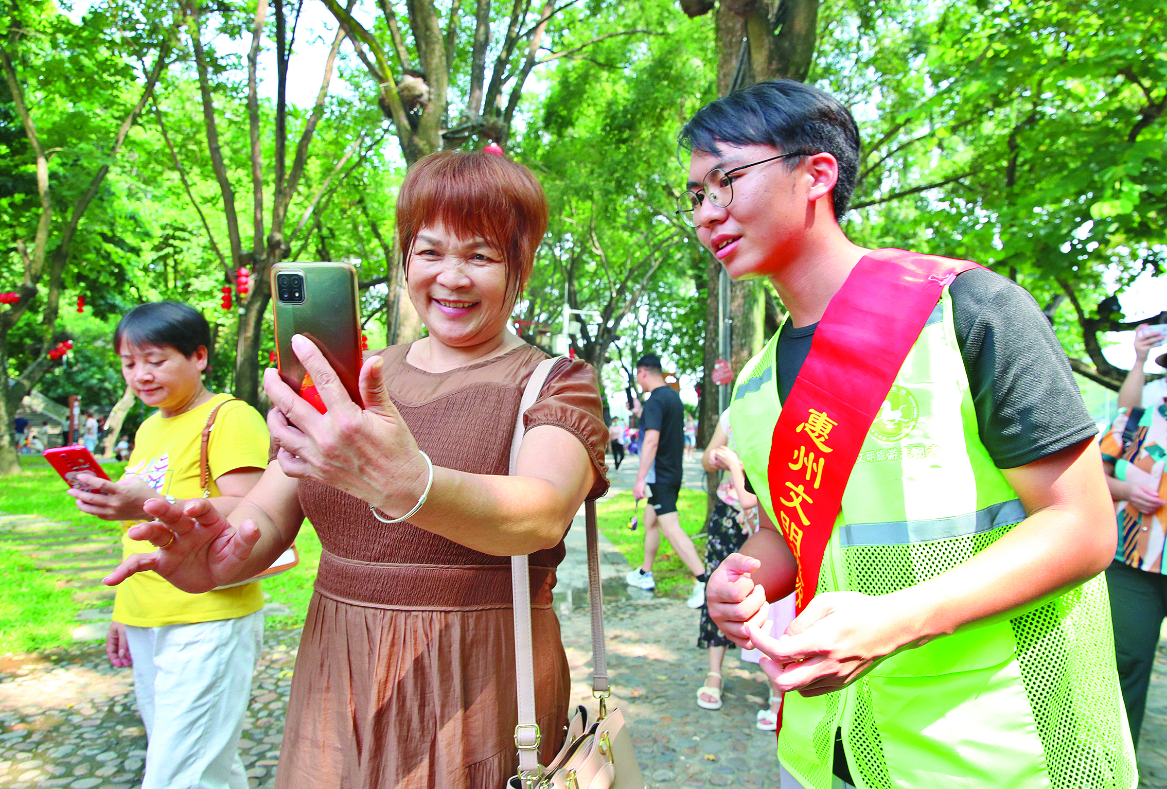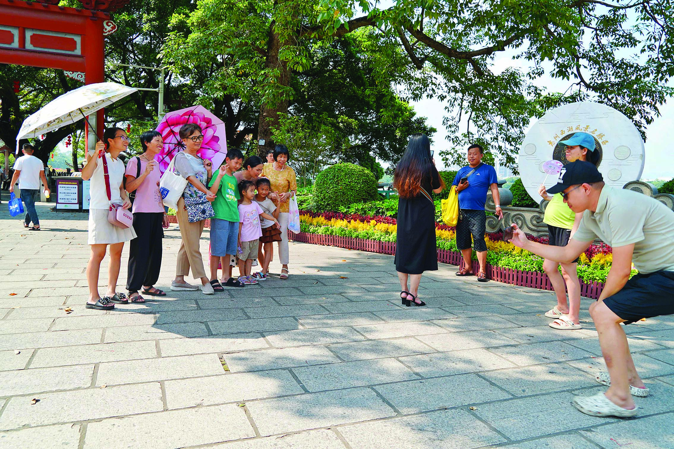 游客在惠州西湖開心合影。 惠州日報(bào)記者李松權(quán) 張藝明 鐘暢新 黃鑫威 羅劍業(yè) 陳濤 攝