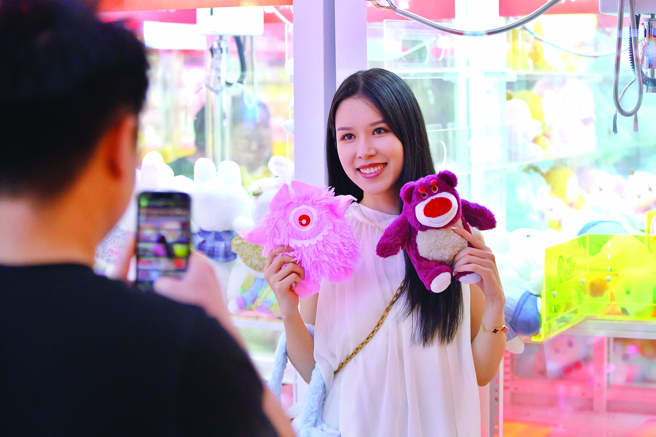 在潮玩店夾到公仔,真的好開心;葜萑請(bào)記者李松權(quán) 張藝明 鐘暢新 黃鑫威 羅劍業(yè) 陳濤 攝