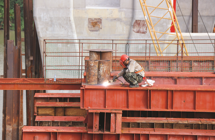 施工人員在作業(yè)。惠州日?qǐng)?bào)記者戴建 通訊員閆婷 攝