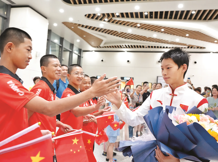 自信、陽(yáng)光、帥氣!10月3日下午6時(shí)許,陳燁剛走出惠州機(jī)場(chǎng)出站口,就受到大家的熱烈歡迎。“非常開(kāi)心,激動(dòng)。沒(méi)有人跟我說(shuō)過(guò),非常開(kāi)心有這么多人過(guò)來(lái)。”接過(guò)鮮花后,陳燁與教練、隊(duì)員們一一擊掌慶賀,并與大家一起合影留念。