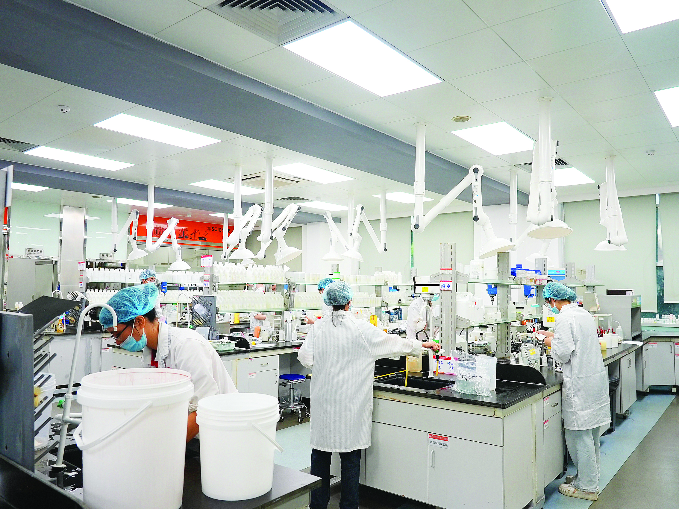 稀釋、攪拌、調(diào)整配方……澳寶公司研發(fā)中心的空氣中彌漫著清新的花香、果香。在這里,每天有上百名研發(fā)人員忙著對配方進行組合、搭配。這也是澳寶公司為迎合大眾對洗護用品越來越高質(zhì)量的要求,積極開展研究和創(chuàng)新,不斷為產(chǎn)品注入“黑科技”的一個縮影。