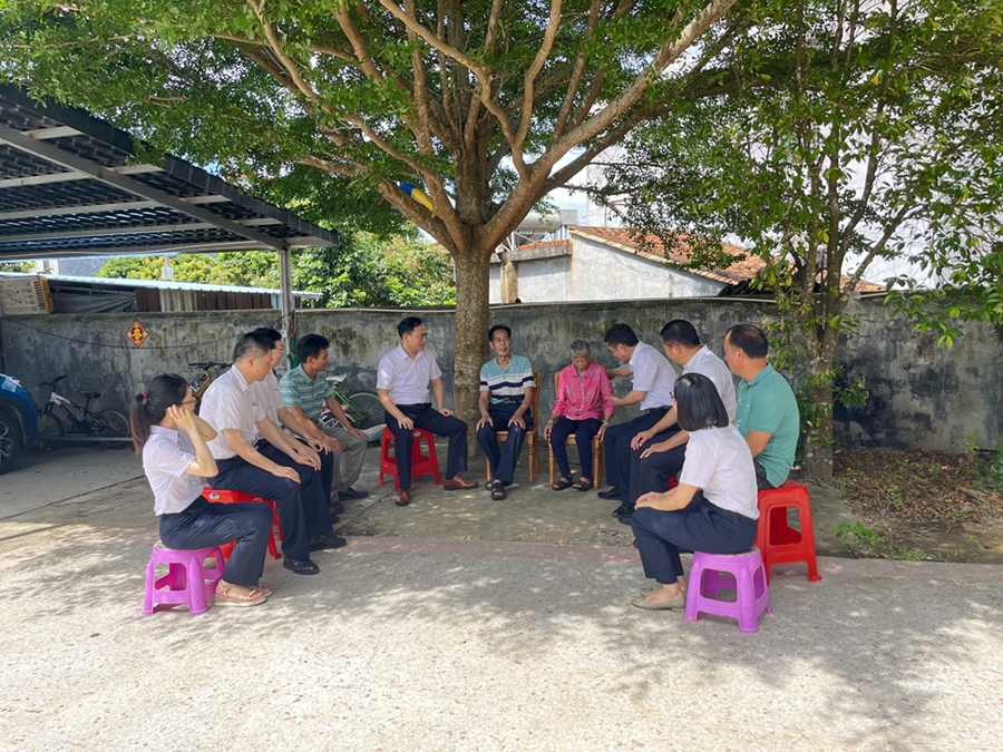 在“黨建引領(lǐng) 百村共建”中,結(jié)對干部認(rèn)真聽取村民們的意見建議。