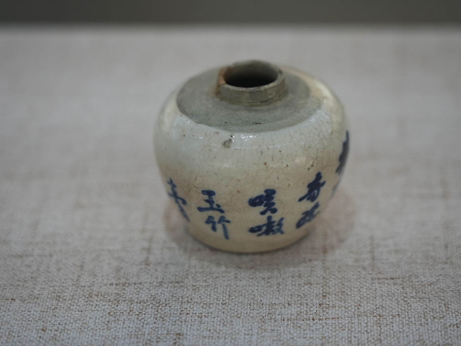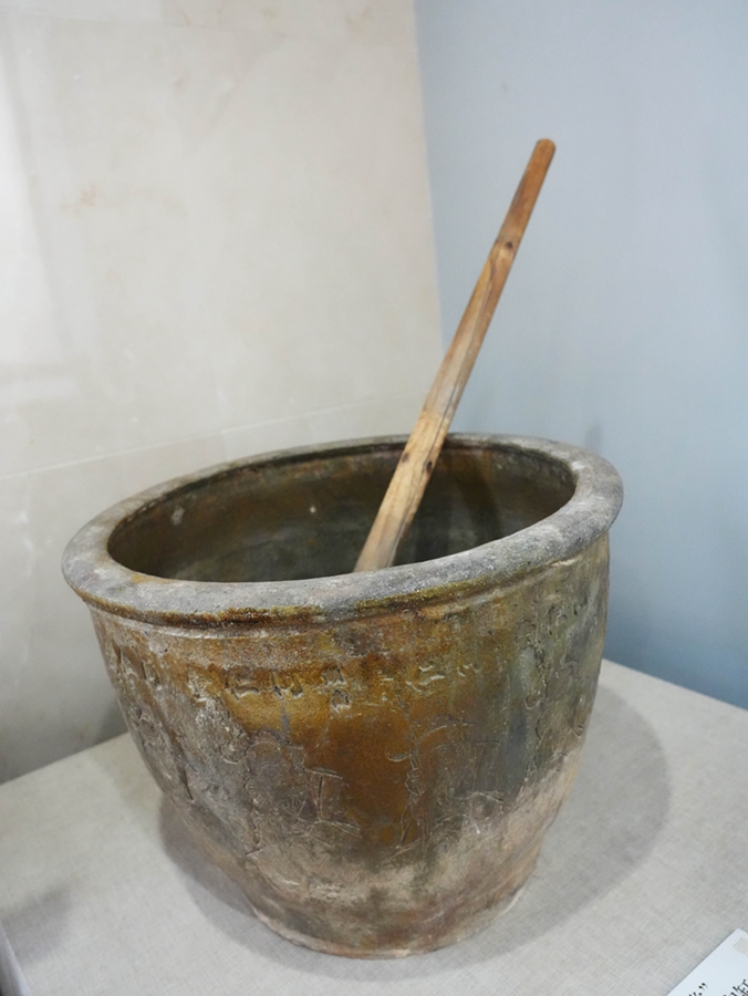 醬釉“同仁堂”銘印華佗像大陶缸。