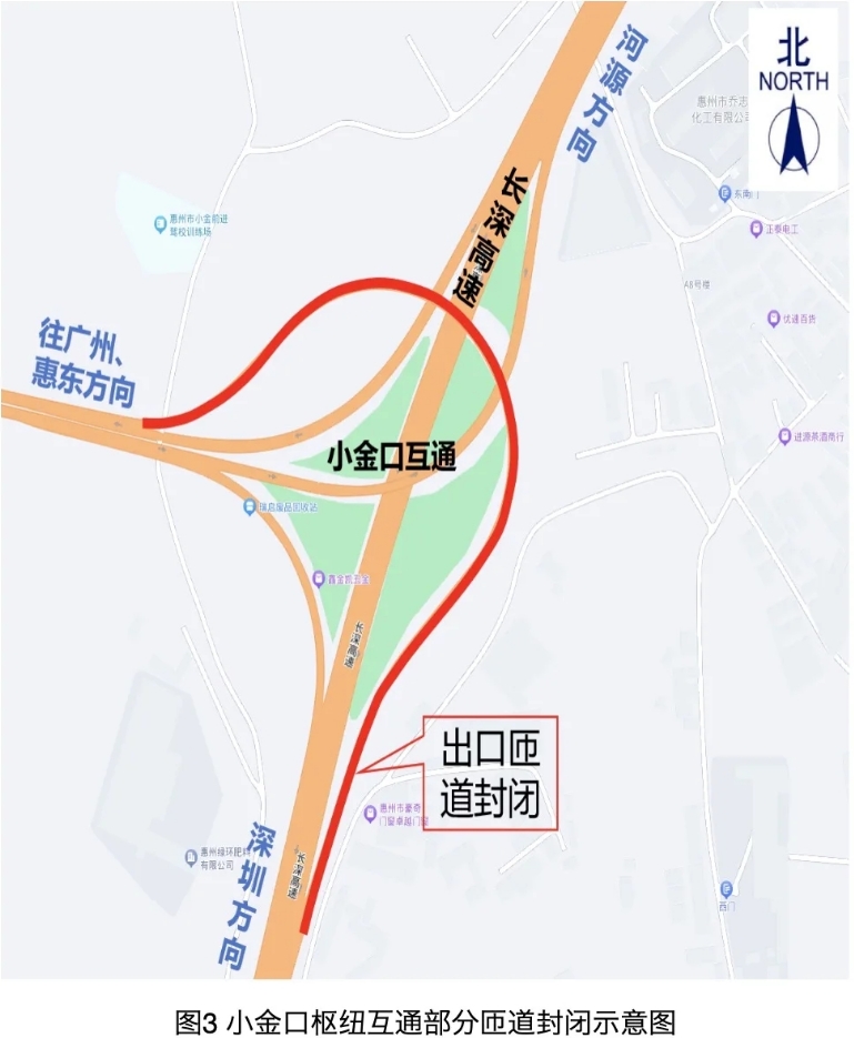 其中,今年10月15日至明年6月15日,長深高速惠州段(惠河高速)惠州西收費(fèi)站南往北方向出口匝道封閉,禁止車輛通行;今年10月15日至明年2月7日,長深高速惠州段(惠河高速)泰美收費(fèi)站北往南方向出口匝道封閉,禁止車輛通行;今年10月15日至明年2月7日,長深高速惠州段(惠河高速)小金口樞紐互通南往北方向出口匝道封閉,禁止車輛通行。