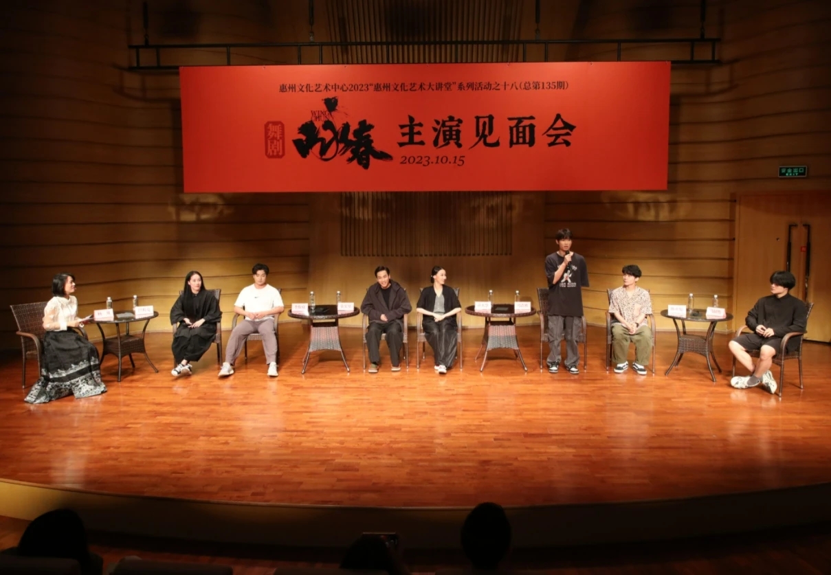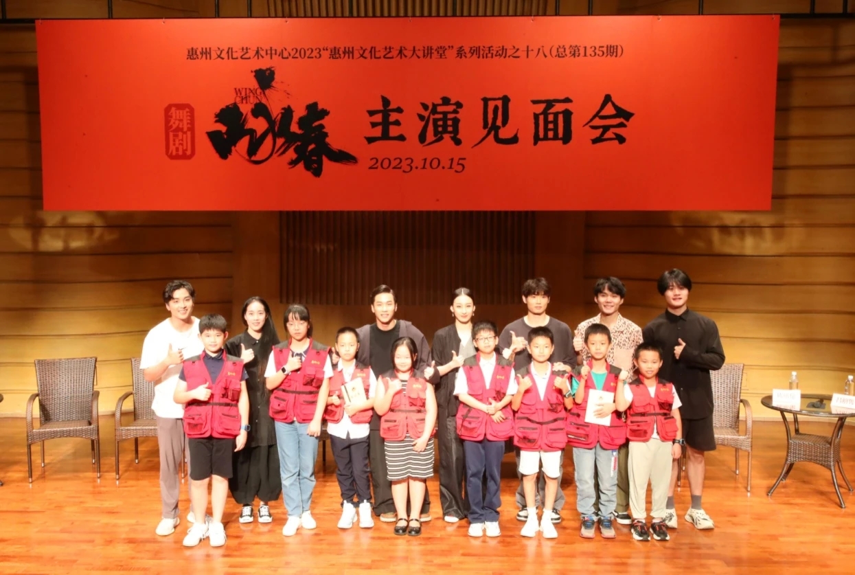 惠州日報訊 (記者譚琳)10月15日下午,備受惠州市民喜愛的舞劇《詠春》劇組在惠州文化藝術中心舉辦主演見面會。李監(jiān)庭(豬肉榮扮演者)、馮浩然及陳席倫(大春扮演者)、常宏基(葉問扮演者)、呂程亮(導演扮演者/八卦掌掌門扮演者)、許天慧(永成扮演者)和呂紹雋(過江龍扮演者)與惠州市民分享了舞劇臺前幕后的故事。