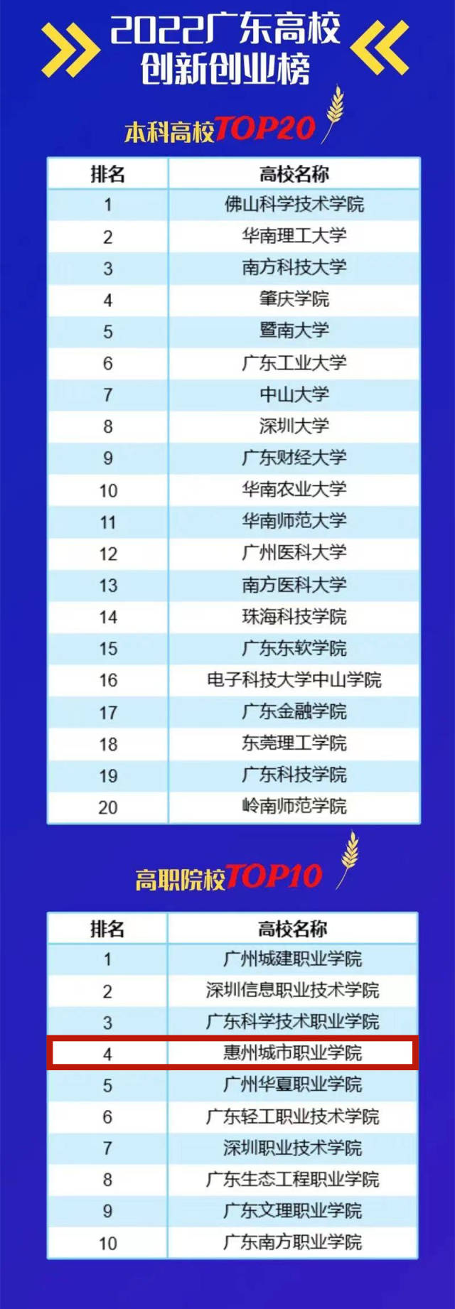 近日,廣東省教育廳、廣東省科學(xué)技術(shù)廳聯(lián)合主辦的2023年粵港澳高校科技成果轉(zhuǎn)化大會在佛山成功舉辦。大會發(fā)布了《廣東高?萍汲晒D(zhuǎn)化年度報告(2022)》和《廣東高校科技成果轉(zhuǎn)化年度榜單(2022)》。其中,在廣東高校創(chuàng)新創(chuàng)業(yè)榜單上,惠州城市職業(yè)學(xué)院在全省89所高職院校中位列第4名。