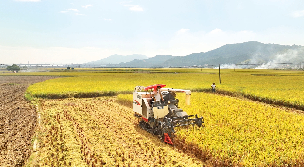 博羅縣園洲鎮(zhèn)九優(yōu)糧油種植基地內,收割機在金黃的稻田上來回作業(yè),收割、脫粒、碎稈還田等工序一氣呵成;輺|縣稔山鎮(zhèn)老坑村、竹園村等鄉(xiāng)村里,村民將農機收割的稻谷裝袋,笑容滿面,滿載而歸。這頭,農民在自家小院里曬稻谷,金黃的稻谷鋪滿院落;那頭,村民借助機器收取晾曬好的稻谷,省時省工;遠處,高鐵列車在金黃的稻田間疾馳而過,伴著農機運作的轟鳴聲,奏響鄉(xiāng)村振興協(xié)奏曲。