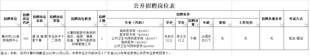 惠州市120急救中心2023年公開(kāi)招聘公告
