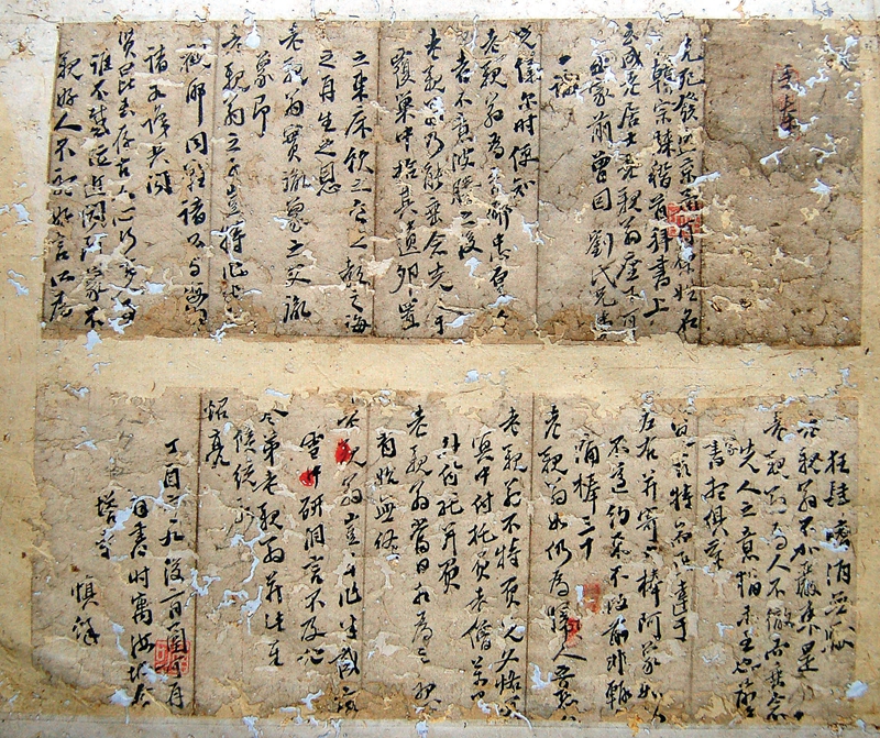 尤為難得的是,他寫(xiě)給侄兒阿蒙的書(shū)信,竟然被博羅韓氏后人保存下來(lái),讓我們?cè)谒陌俣嗄旰蟮慕裉欤酶Q函可書(shū)法真跡。這幾紙家書(shū),雖然年久蠹蝕,個(gè)別文字已難辨認(rèn),但仍然可以讓我們從中窺見(jiàn)函可的書(shū)法造詣。正如書(shū)法家趙玄所言,這兩封信札,雖出于函可殘年之手,字里行間卻毫無(wú)衰敗之跡。通篇數(shù)百字,點(diǎn)畫(huà)精準(zhǔn)細(xì)膩,結(jié)字嚴(yán)謹(jǐn)寬博,布局流暢自然,情感盡顯筆端,意境雄渾蒼莽的書(shū)法與傅山更接近(詳參趙玄《品讀函可大師的書(shū)法藝術(shù)》,下引同)。