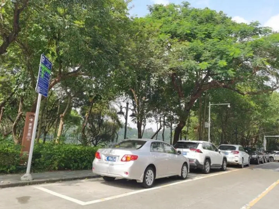 智慧停車。位于惠州植物園景區(qū)內(nèi)的植物園停車場,是公共停車場,在早上8點到晚上10點里,每輛車僅收費5元。記者發(fā)現(xiàn),為方便市民辨認,該智慧停車場在靠近馬路的位置還立了個醒目的藍色標識牌。