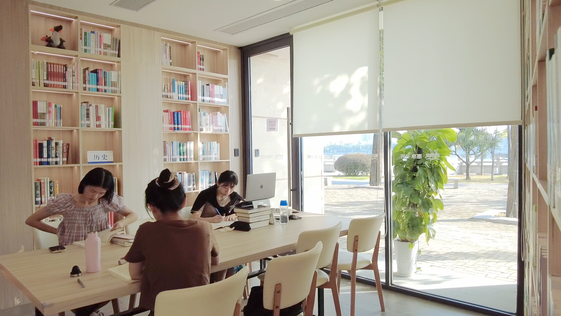 記者了解到,目前兩間惠享書房共有圖書9500冊(cè)左右,圖書資源豐富多樣,歷史、人文、教育等書籍一應(yīng)俱全,書籍分門別類整齊擺放,書房設(shè)有學(xué)習(xí)區(qū)、智能共讀區(qū)、自助服務(wù)區(qū)。讀者在桌前靜心閱讀,空氣中仿佛只有翻閱書本以及在筆記本落筆記錄的“唰、唰”聲。陽(yáng)光透過高大的玻璃窗灑在書本上,人們享受著沉浸式閱讀,一抬頭滿眼綠意、歲月靜好,思緒在書本和現(xiàn)實(shí)中自由切換。