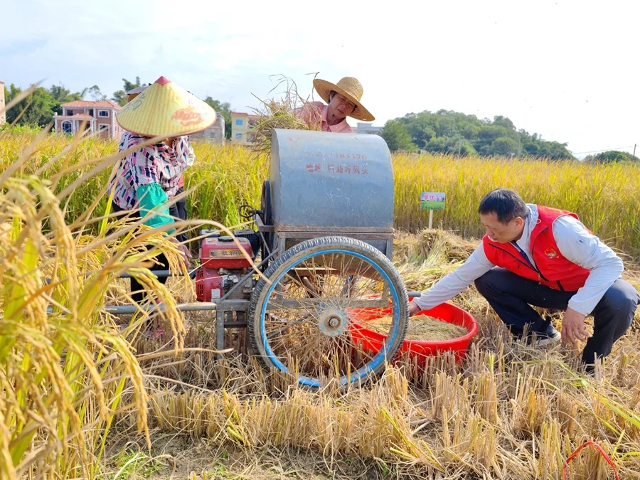 今年7月份,惠州首次引進(jìn)多功能精量氣播(旱播)機(jī),在撂荒地上示范種植節(jié)水抗旱稻,如今正是晚稻收獲的季節(jié),11月7日上午,在惠城區(qū)汝湖鎮(zhèn)仍北村,惠州市農(nóng)業(yè)農(nóng)村綜合服務(wù)中心聯(lián)合惠城區(qū)農(nóng)業(yè)技術(shù)推廣中心對(duì)節(jié)水抗旱稻進(jìn)行測(cè)產(chǎn),結(jié)果顯示,我市節(jié)水旱稻機(jī)械直播技術(shù)測(cè)產(chǎn)畝產(chǎn)最高達(dá)1061.76斤(濕谷)。此次旱稻測(cè)產(chǎn)平均產(chǎn)量超過(guò)全市水稻平均畝產(chǎn)水平,旱稻種植經(jīng)驗(yàn)做法值得在惠州進(jìn)行示范推廣。