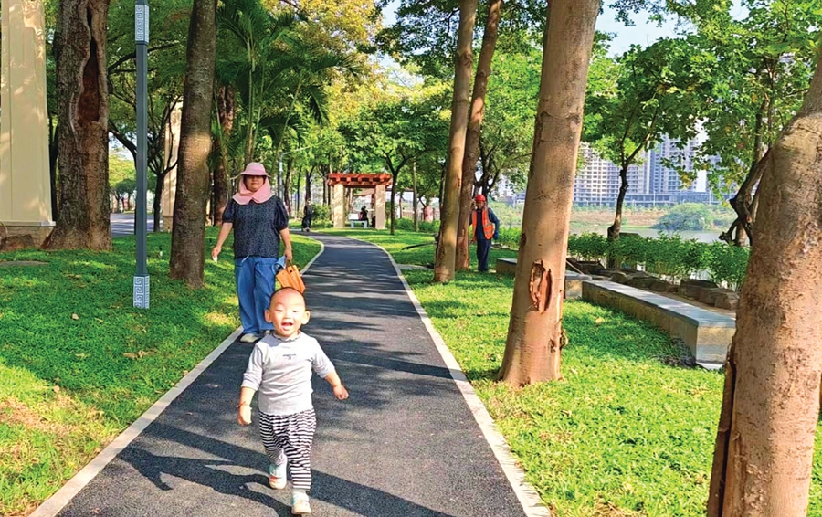 采訪當(dāng)天上午,住在荷蘭水鄉(xiāng)的馬女士正帶著3歲女兒在荷香園玩滑滑梯和運(yùn)動(dòng)器材。鍛煉玩耍了一個(gè)多小時(shí)后,她和女兒就往江邊方向走到荷蘭水鄉(xiāng)周邊綠地,走走步道,看看江景。“綠地變得更干凈漂亮,和荷香園串聯(lián)起來(lái),可以好好享受幾個(gè)小時(shí)!瘪R女士說(shuō),近一個(gè)月以來(lái),全家人幾乎每天都會(huì)來(lái)家門口這兩個(gè)串聯(lián)起來(lái)的景點(diǎn)鍛煉和玩耍。