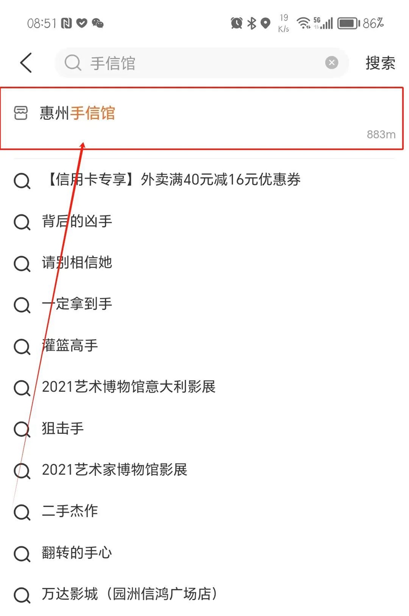 3.回到“首頁”,點擊上方搜索欄,搜索“手信館”