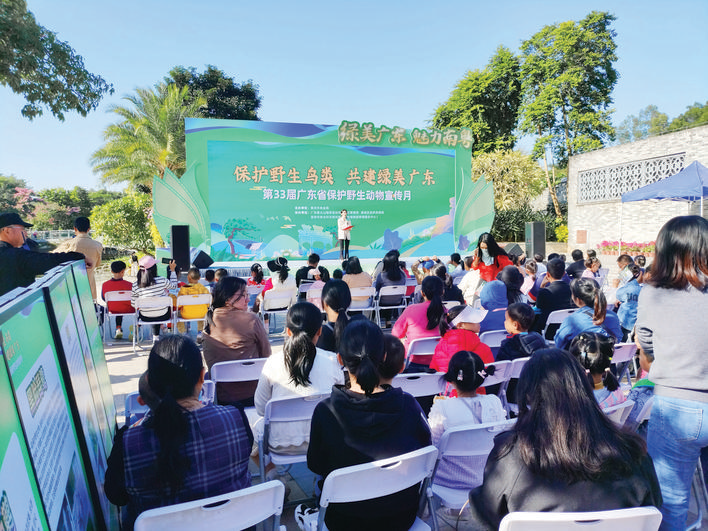 惠州日報訊 (記者游璇鈺 通訊員李翊)每年11月是廣東省保護野生動物宣傳月。11月18日下午,我市在惠州植物園舉行第33屆廣東省保護野生動物宣傳月活動;顒又黝}為“保護野生鳥類 共建綠美廣東”,通過舉辦系列科普宣傳教育活動,倡導全民自覺樹立愛鳥護鳥、保護生物多樣性、促進人與自然和諧共生的理念,用實際行動保護野生動植物棲息地、遷徙地、繁育地。