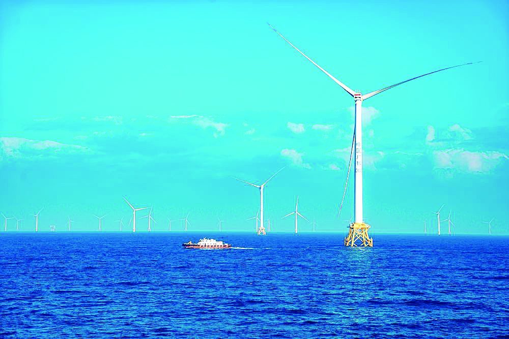 在惠東縣稔平半島以南的海域,40臺(tái)單支葉片長(zhǎng)達(dá)86.5米的風(fēng)機(jī)佇立在湛藍(lán)的海上,海風(fēng)吹動(dòng)葉輪,風(fēng)動(dòng)就轉(zhuǎn)化為電能,點(diǎn)亮萬家燈火。在它們的旁邊,新的風(fēng)機(jī)安裝正在有序開展,到今年底,這里將新屹立64臺(tái)機(jī)組。