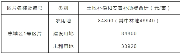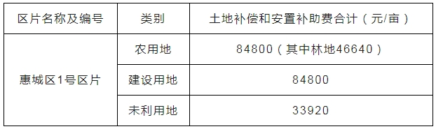 土地補(bǔ)償費(fèi)和安置補(bǔ)助費(fèi)按《惠州市人民政府關(guān)于公布實(shí)施征收農(nóng)用地區(qū)片綜合地價的公告》(惠府公〔2021〕4號)規(guī)定的惠城區(qū)1號區(qū)片綜合地價標(biāo)準(zhǔn)執(zhí)行,其中全市統(tǒng)一設(shè)定林地調(diào)節(jié)系數(shù)0.55,征收建設(shè)用地參照征收農(nóng)用地區(qū)片綜合地價執(zhí)行,征收未利用地參照征收農(nóng)用地區(qū)片綜合地價設(shè)定調(diào)節(jié)系數(shù)0.4執(zhí)行。