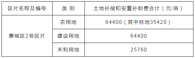 土地補(bǔ)償費(fèi)和安置補(bǔ)助費(fèi)按《惠州市人民政府關(guān)于公布實(shí)施征收農(nóng)用地區(qū)片綜合地價的公告》(惠府公〔2021〕4號)規(guī)定的惠城區(qū)2號區(qū)片綜合地價標(biāo)準(zhǔn)執(zhí)行,其中全市統(tǒng)一設(shè)定林地調(diào)節(jié)系數(shù)0.55,征收建設(shè)用地參照征收農(nóng)用地區(qū)片綜合地價執(zhí)行,征收未利用地參照征收農(nóng)用地區(qū)片綜合地價設(shè)定調(diào)節(jié)系數(shù)0.4執(zhí)行。