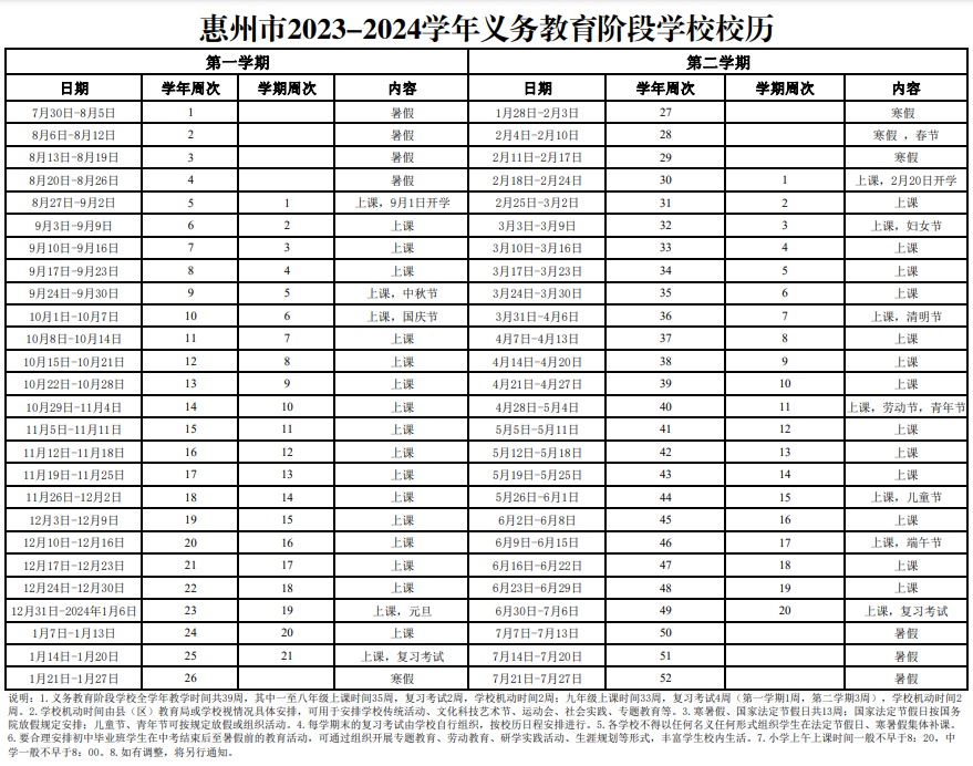 來看看惠州中小學的校歷吧!