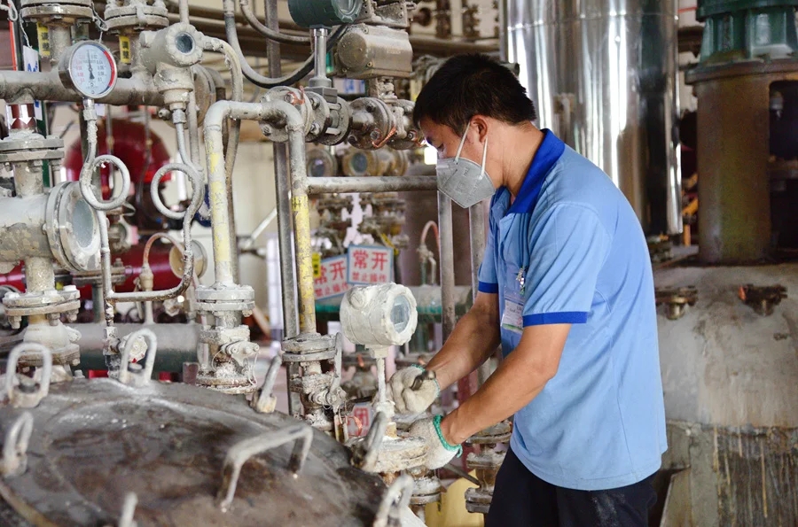 惠州市固德爾合成材料有限公司工作人員在檢修設(shè)備。