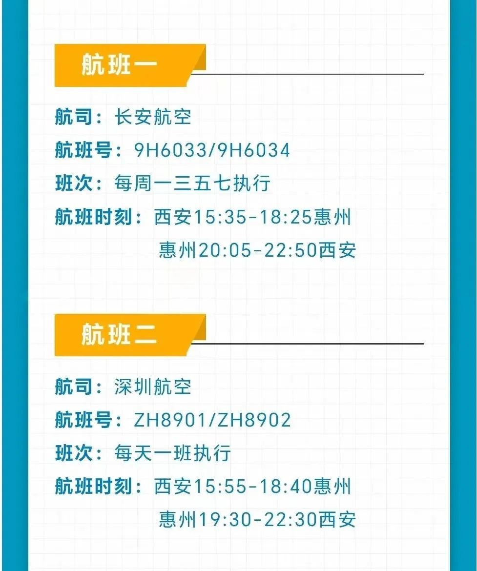 據(jù)惠州機(jī)場的消息,2023年 11月26日起,長安航空將恢復(fù)惠州直飛西安的航線,每周一、三、五、七執(zhí)行;謴(fù)后,惠州機(jī)場直飛西安的航班將由現(xiàn)在每周7班,增加至每周11班。