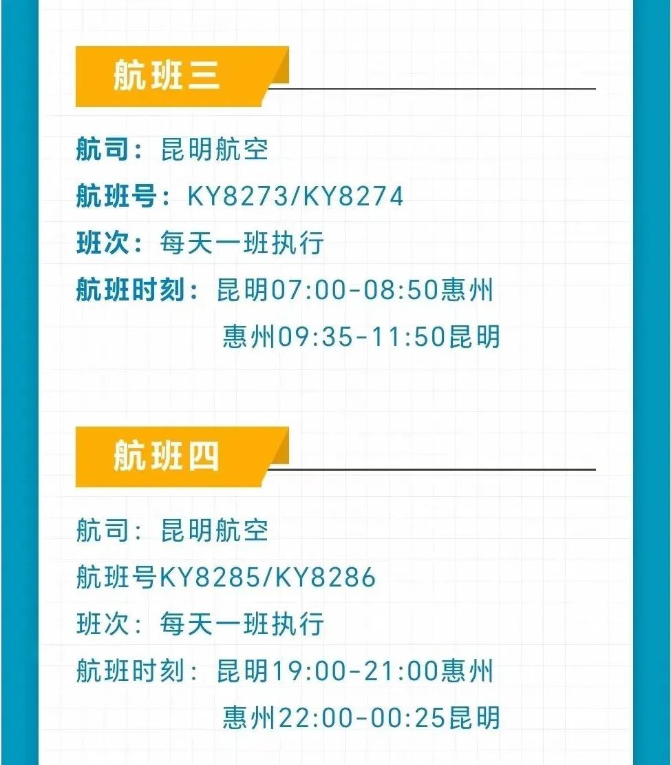 同時(shí),昆明航空也將從2023年12月9日起恢復(fù)惠州直飛昆明的航線,每天2班執(zhí)行。
