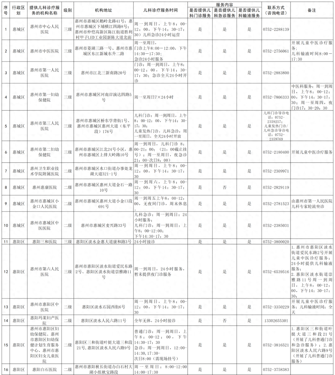 名稱、地址、兒科診療服務(wù)時(shí)間