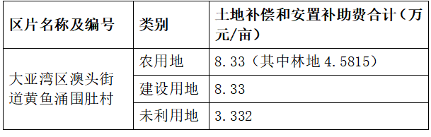 土地補償費和安置補助費按《惠州市人民政府關(guān)于公布實施征收農(nóng)用地區(qū)片綜合地價的公告》(惠府公〔2021〕4號)規(guī)定的大亞灣區(qū)1號區(qū)片綜合地價標(biāo)準(zhǔn)執(zhí)行,其中全市統(tǒng)一設(shè)定林地調(diào)節(jié)系數(shù)0.55,征收建設(shè)用地參照征收農(nóng)用地區(qū)片綜合地價執(zhí)行,征收未利用地參照征收農(nóng)用地區(qū)片綜合地價設(shè)定調(diào)節(jié)系數(shù)0.4執(zhí)行。
