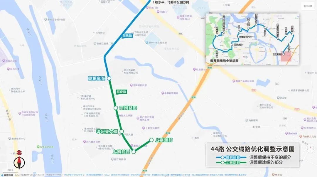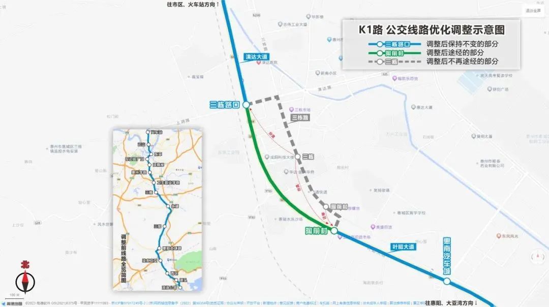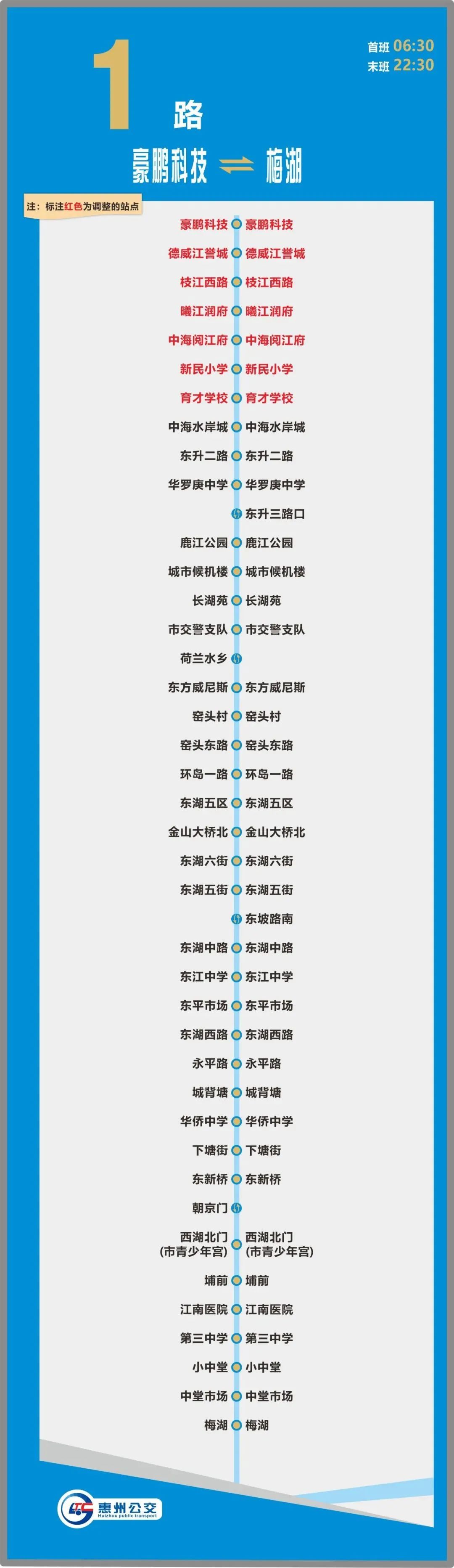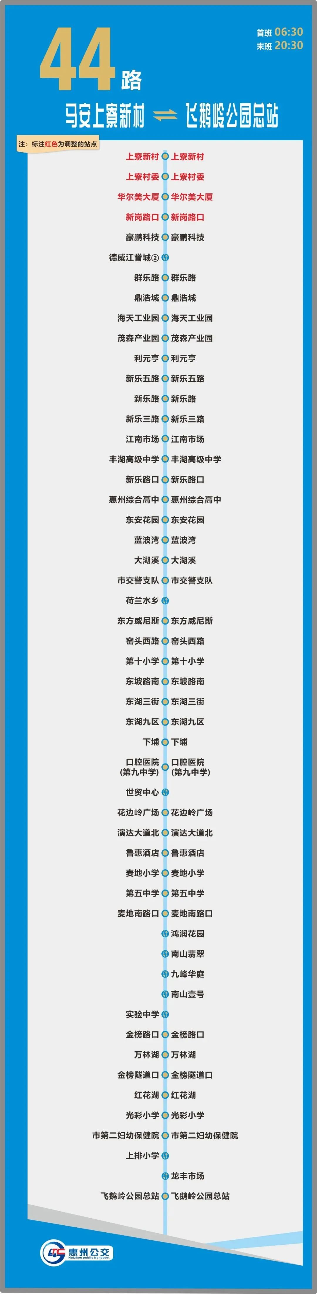 線路增設(shè)站點:線路改由演達(dá)大道直行葉挺大道行駛,原三棟路口、陶前村站點遷移至葉挺大道?。