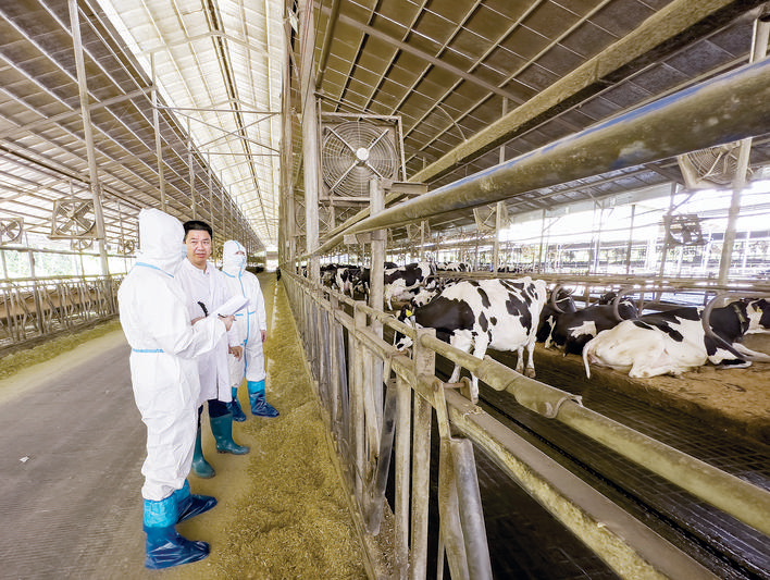 惠州海關(guān)關(guān)員在奶牛場開展監(jiān)管作業(yè)。 惠州日報(bào)記者劉煒煒 通訊員張小雄 攝