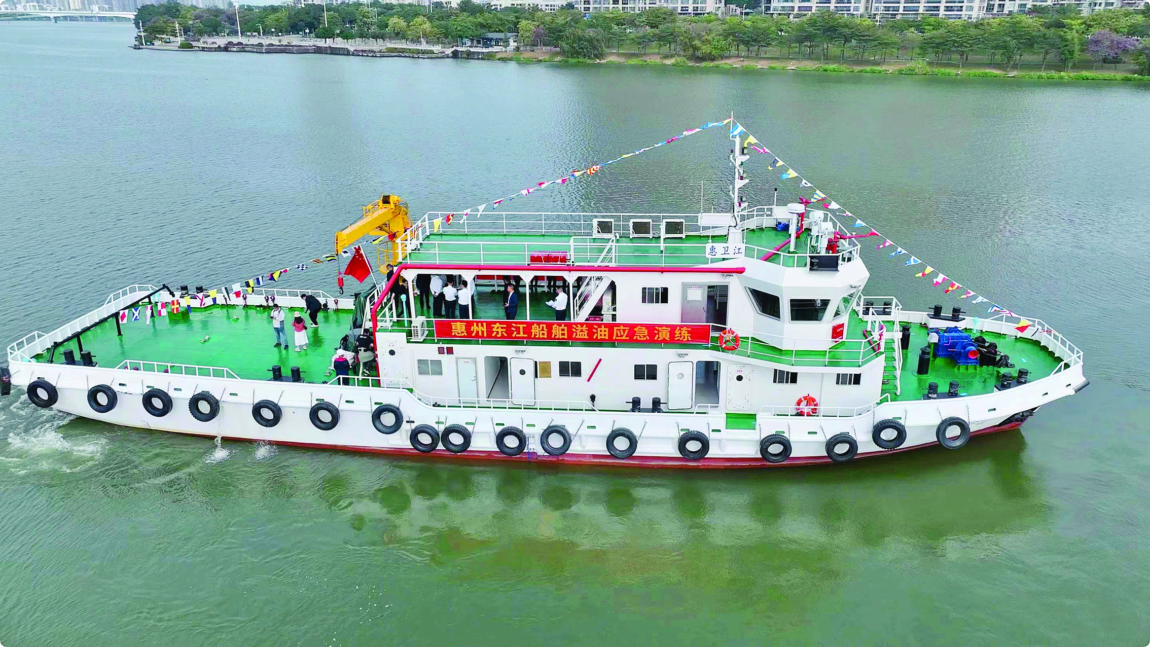 守護(hù)東江碧水,惠州再添“利器”。11月29日上午,東江惠州段首艘多功能應(yīng)急新型拖船“惠衛(wèi)江”列編服役,這是該水域內(nèi)噸位最大、應(yīng)急功能最齊全的多功能新型拖船,總長(zhǎng)36.7米、型寬8.8米、型深3米,滿載排水量372噸,主機(jī)功率916KW,將有力提升我市在東江的船舶溢油應(yīng)急處置能力,保障水域安全。當(dāng)天上午,“惠衛(wèi)江”參加了2023年惠州東江船舶溢油應(yīng)急聯(lián)合演練。