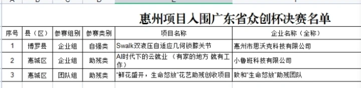 11月28日,2023年廣東“眾創(chuàng)杯”創(chuàng)業(yè)創(chuàng)新大賽殘疾人公益賽復(fù)賽在廣州舉行。120個(gè)項(xiàng)目分4組進(jìn)行比拼,爭(zhēng)奪決賽32強(qiáng)名額。最終經(jīng)過(guò)精彩角逐,惠州共有3個(gè)項(xiàng)目闖入決賽。