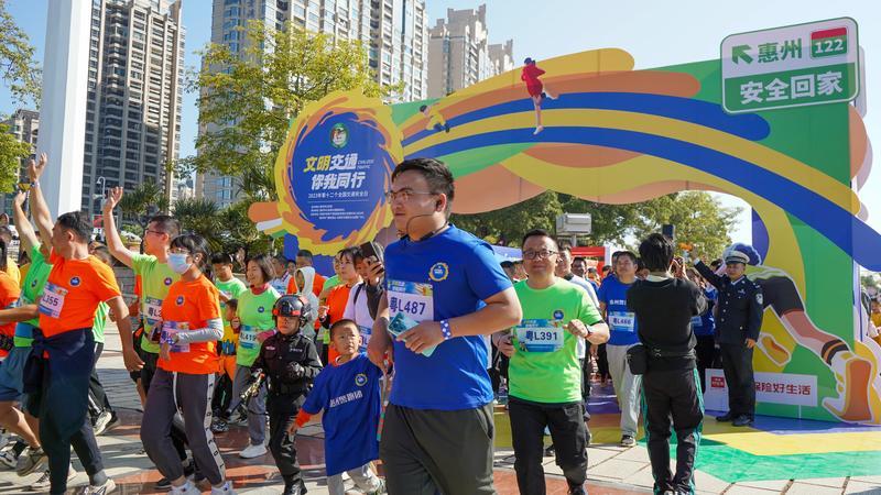 歡樂跑環(huán)節(jié),市民一邊跑步一邊學(xué)習(xí)交通安全知識(shí)。 惠州日報(bào)記者陳濤 攝