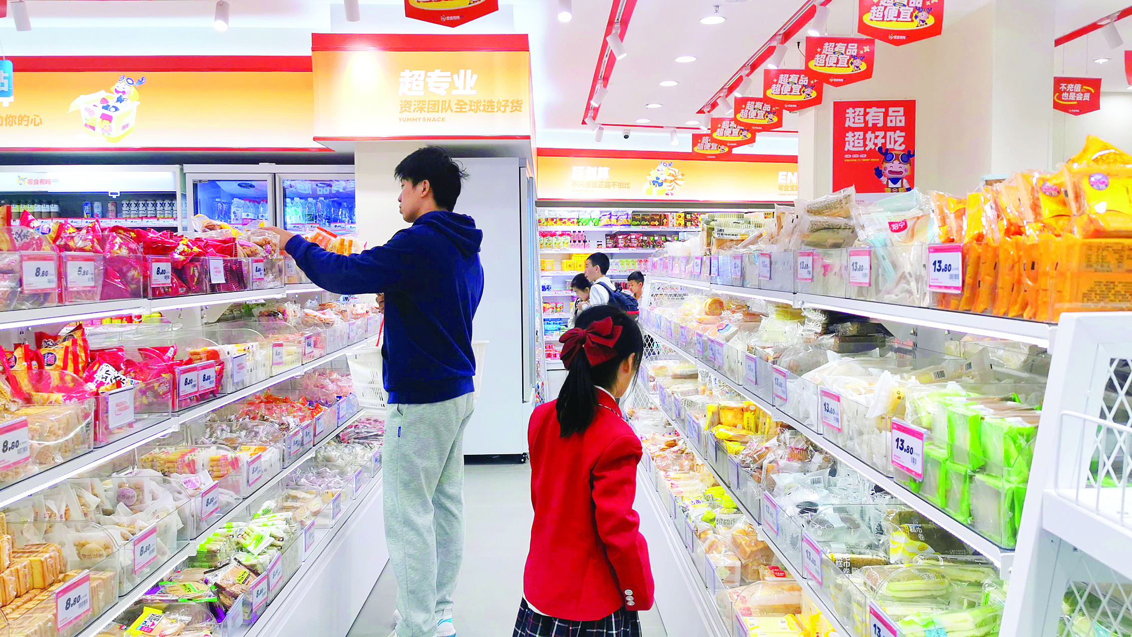 “單藍(lán)天花園這一家店,我們就收集了1400多種品類的零食,能覆蓋不同年齡段,也有高、中、低檔不同價(jià)位的零食可供選擇!币谆⒄f,與傳統(tǒng)超市不同的是,此類零食店更注重購物環(huán)境的打造,也更注重店鋪裝潢、配色以及產(chǎn)品陳列整潔度,著力打造市民更愛逛、更愛買的零食店。據(jù)統(tǒng)計(jì),該店日均成交可達(dá)400~600單次。