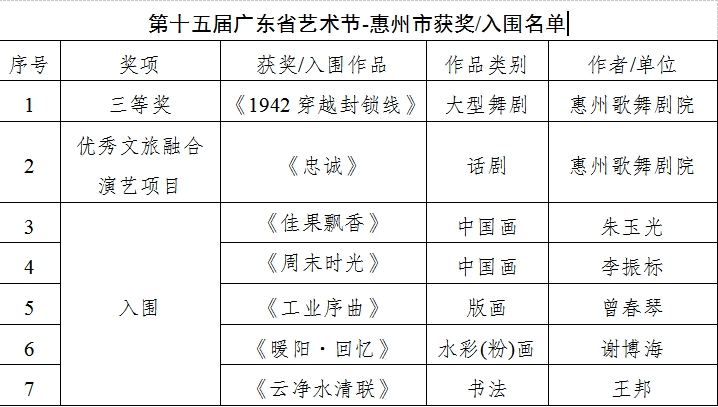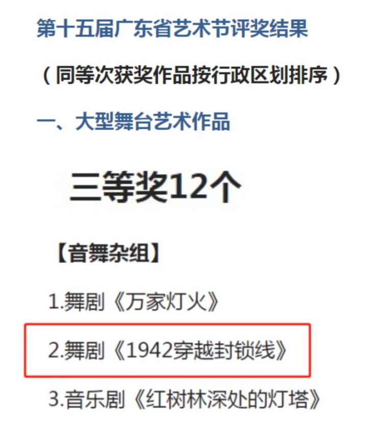 其中,由中共惠州市委宣傳部、惠州市文化廣電旅游體育局聯(lián)合出品,惠州歌舞劇院創(chuàng)排演出的原創(chuàng)大型舞劇《1942穿越封鎖線》在70多個地市大型劇目中脫穎而出,榮獲第十五屆廣東省藝術(shù)節(jié)大型舞臺藝術(shù)作品三等獎,是近15年來,惠州原創(chuàng)舞劇在廣東省藝術(shù)節(jié)上獲獎的新突破。