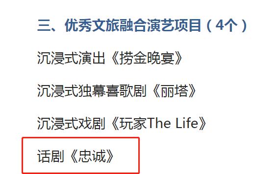 由中共惠州市委宣傳部、惠州市文化廣電旅游體育局統(tǒng)籌策劃,惠州歌舞劇院創(chuàng)排演出的原創(chuàng)紅色話劇《忠誠》獲評“優(yōu)秀文旅融合演藝項(xiàng)目”。